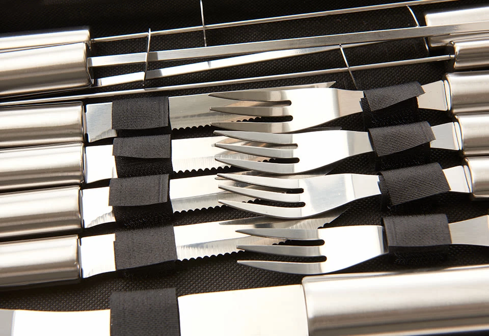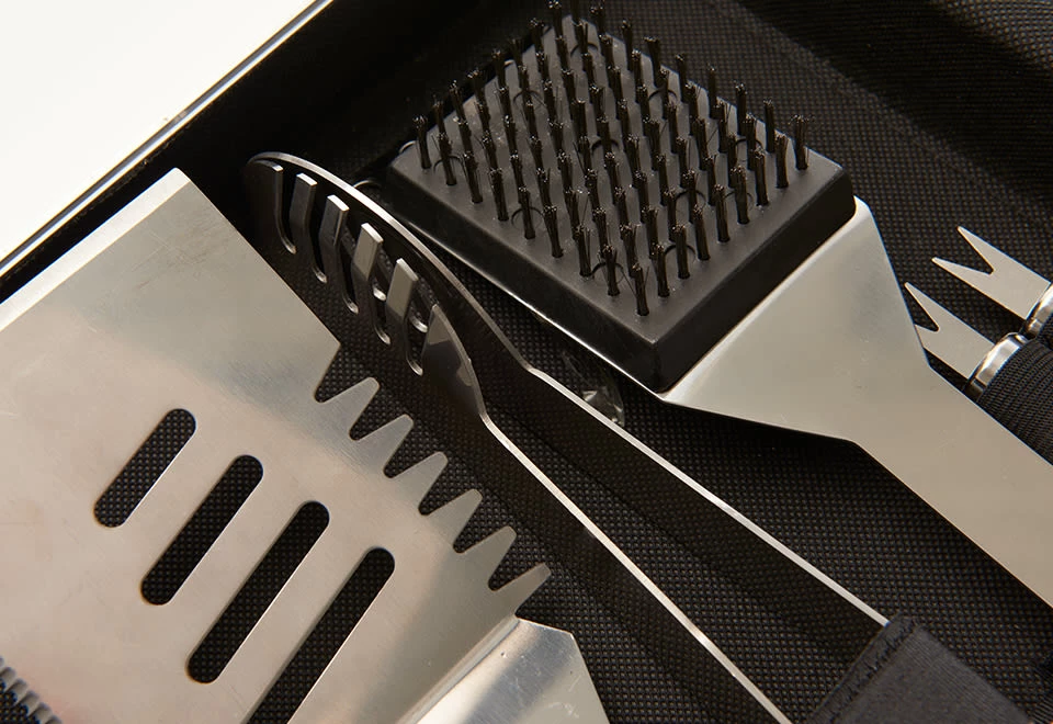 The 26-Piece BBQ Grill Set is a complete suite of tools in a durable aluminum case. It’s everything you need for a great night of grilling.