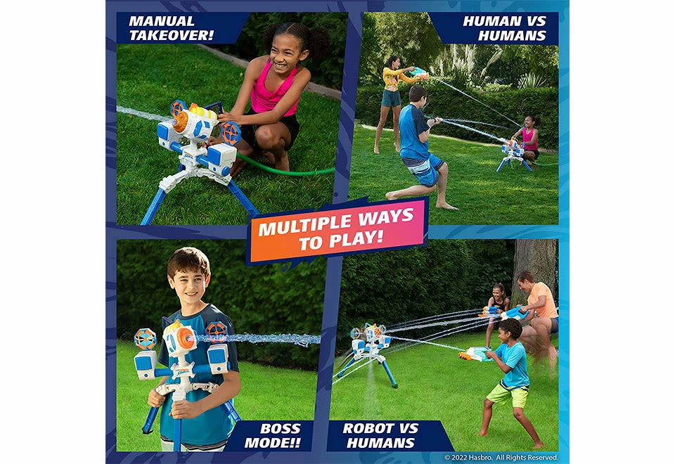 The Backyard Water Blaster Robot is the ultimate adversary for your outdoor water battles. Knock down the targets to win the game.
