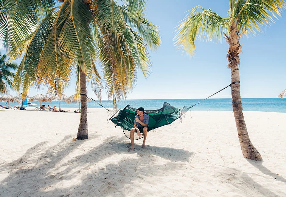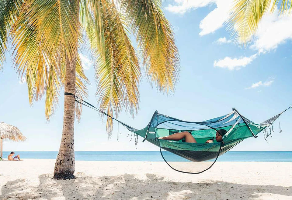• Rip-stop and poly pack hammock construction for lightweight durability