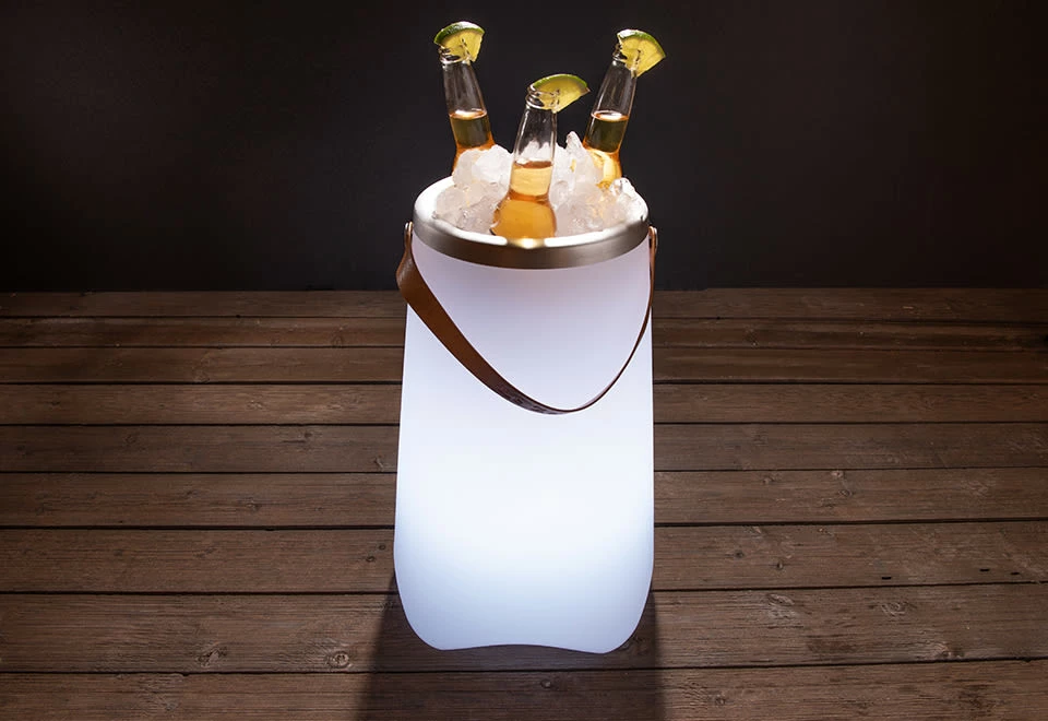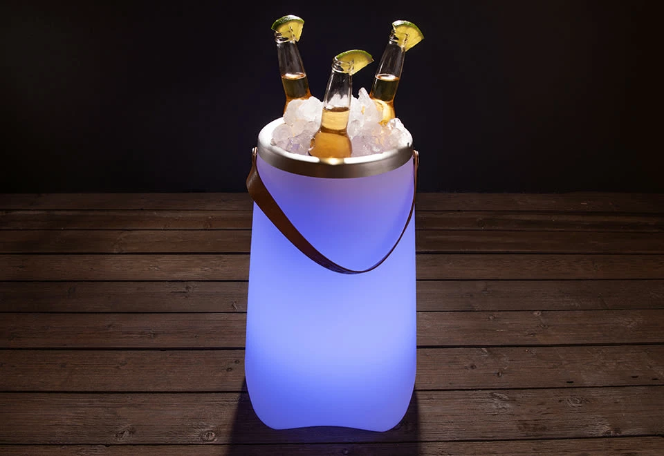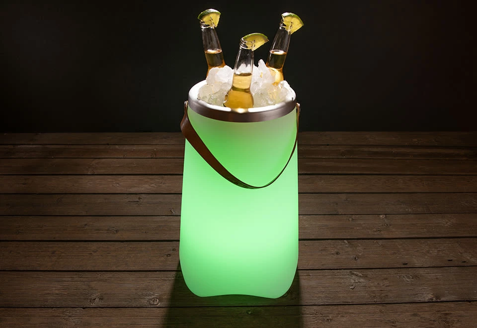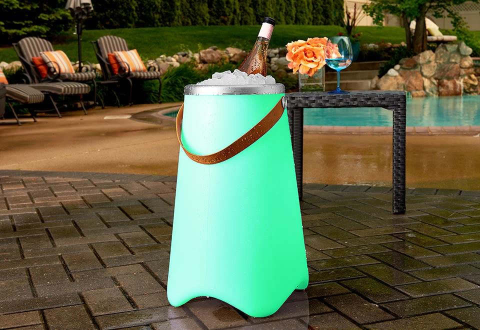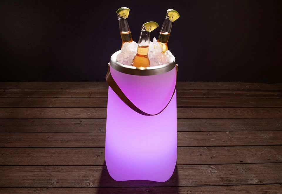Chill your favorite wine, champagne, or liquor while adding a bit of atmosphere to your environment with the Lighted Wine Bucket and Speaker.