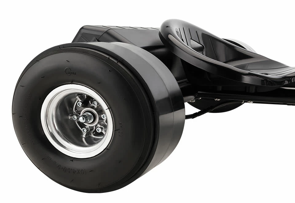 • 10” diameter cart style pneumatic rear tires with POM 4” wide slick surface, (removable/replaceable) sleeves and speed bearings