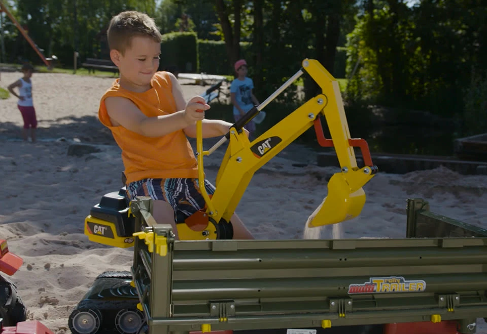 The Ride-On Excavator is ideal for digging, dumping gravel, sand and snow. In the yard or at the beach, this sturdy steel digger means business.