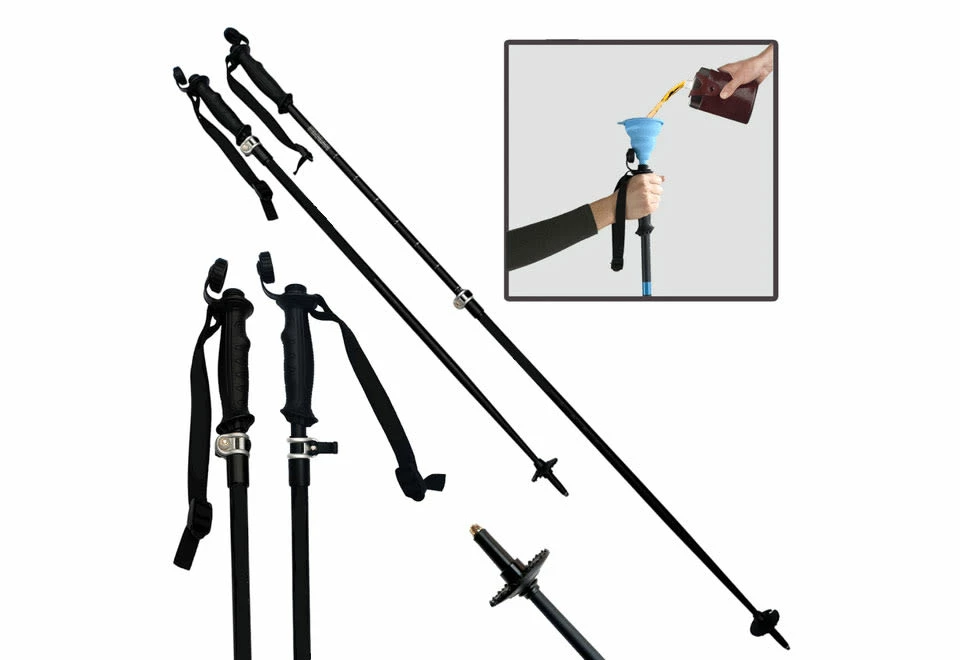 Ski Pole Beverage Dispensers (Set of 2) are the extendable ski poles with a built-in flask in each handle. Just unscrew the top to enjoy your favorite spirit on the slopes.