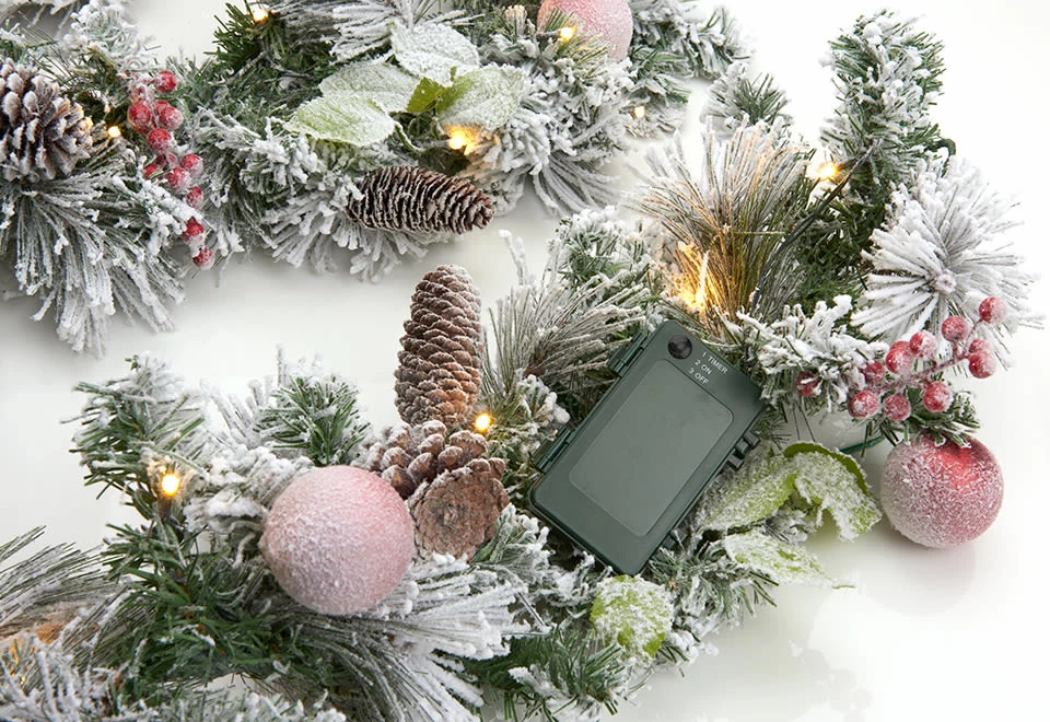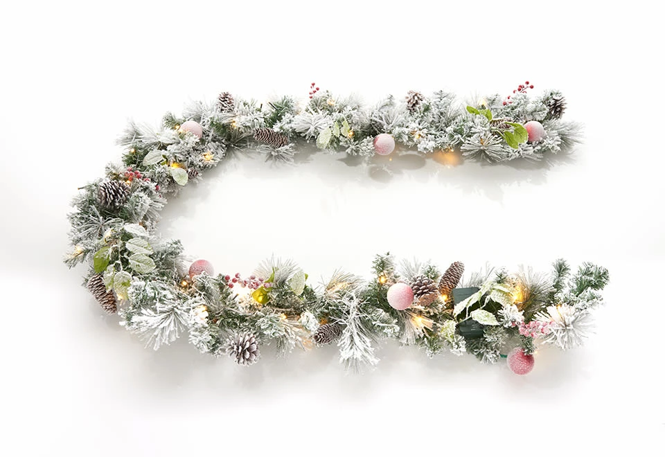 Decorate your home the easy way with our White Flocked 9-Ft. Cordless Pre-Lit Indoor/Outdoor Garland. It comes pre-lit and pre-decorated, with the festive “flocked” look of fresh snow.
